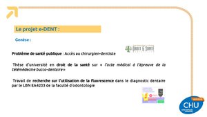 Déploiement du programme E-Dent sur tout le territoire. Possibilité de mutualisation de l’outil numérique (ORL, Neurologue, orthophoniste, etc.
